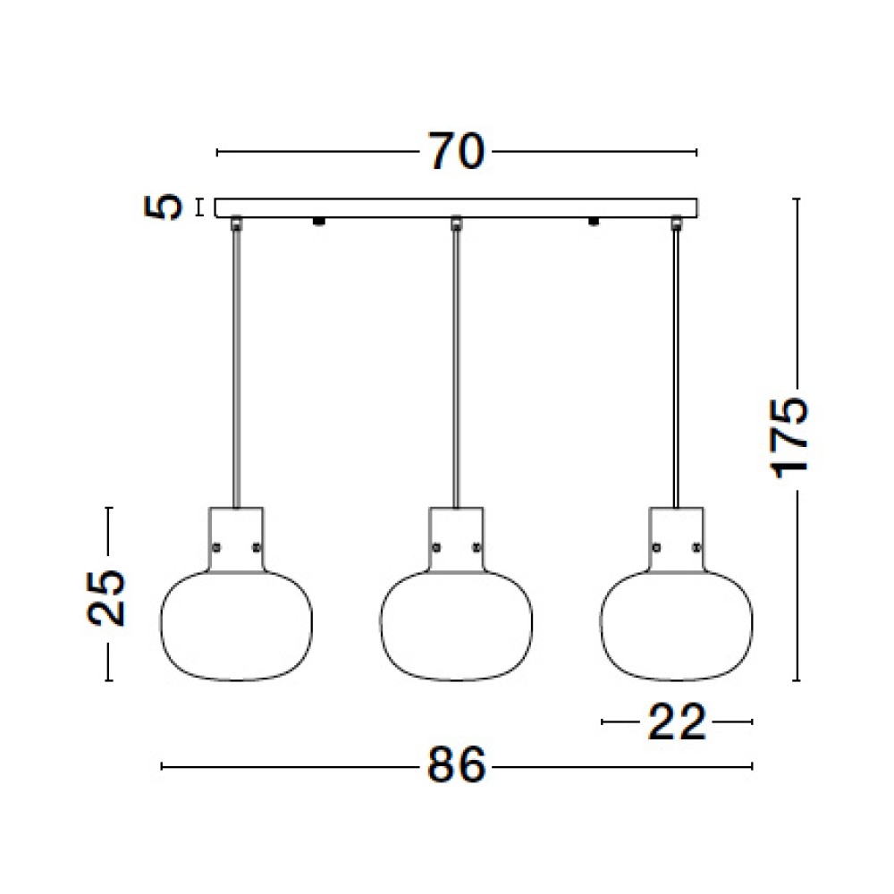 Smoky Glass & Black Cord & Black Metal Base Bulb Type: LED E27 3x12 Watt 230 Volt IP20 Bulb..