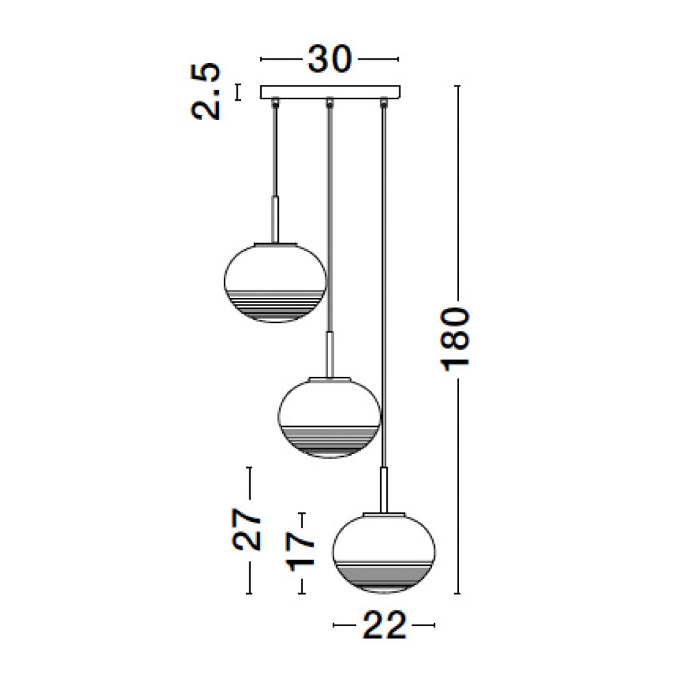 Smoky Glass & Black Cord & Black Metal Base Bulb Type: LED E27 3x12 Watt 230 Volt IP20 Bulb..