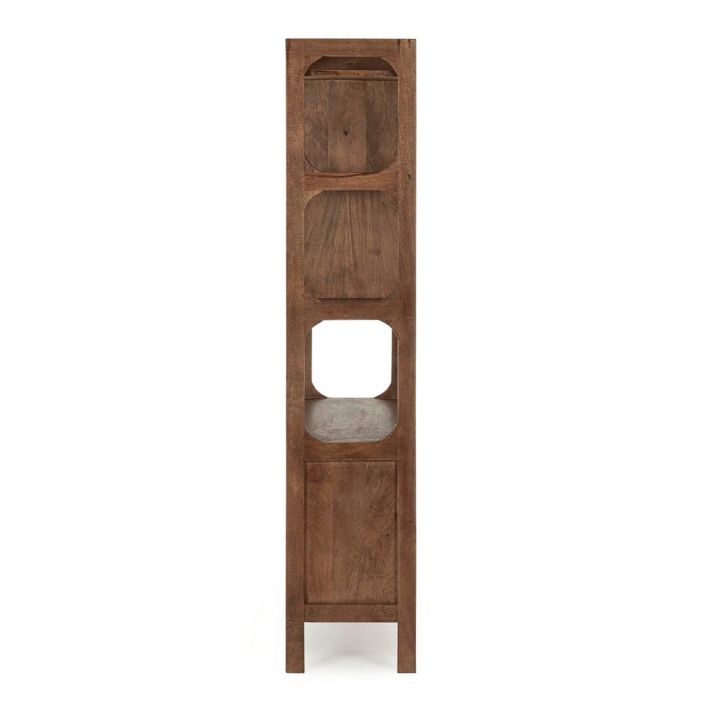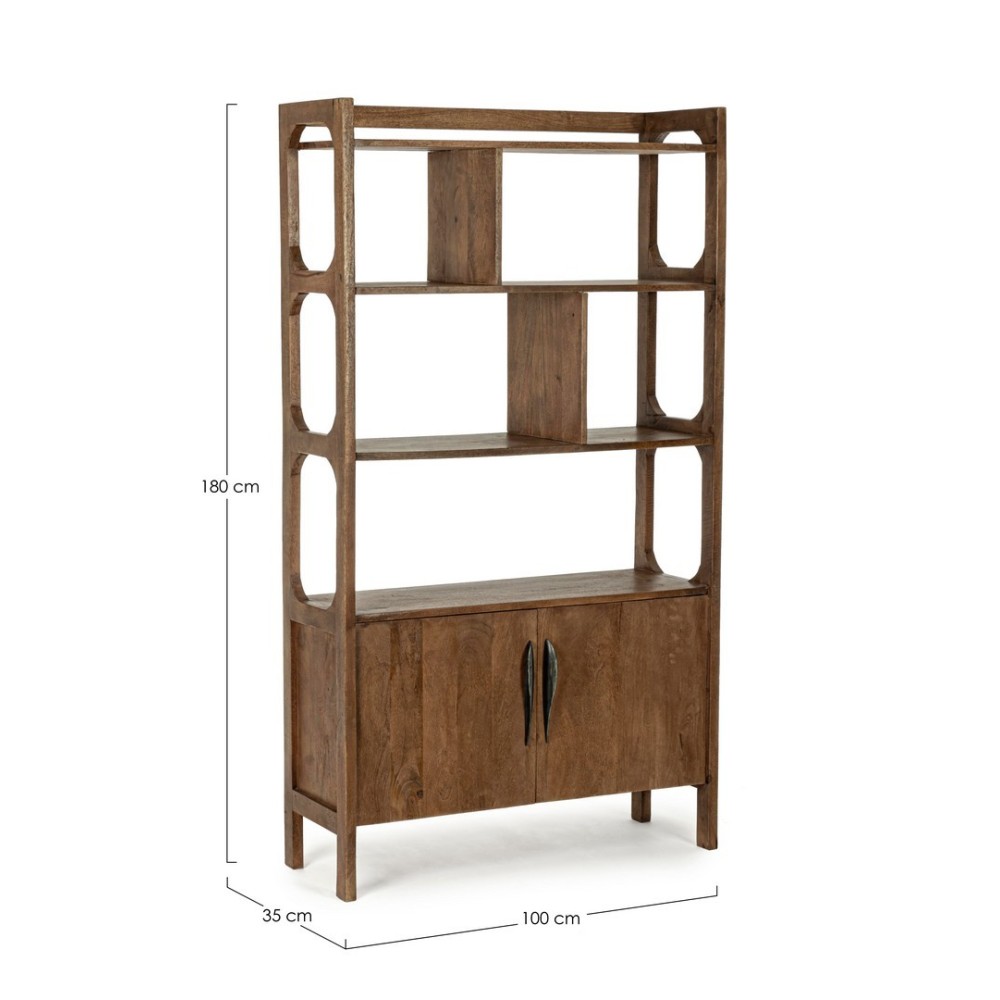FRAME AND LEGS IN MANGO WOOD WITH WATER-BASED PAINT FINISHING. BACKREST IN PLYWOOD. DOOR COMPARTMENT INCLUDING SHELF. STEEL HANDLES.